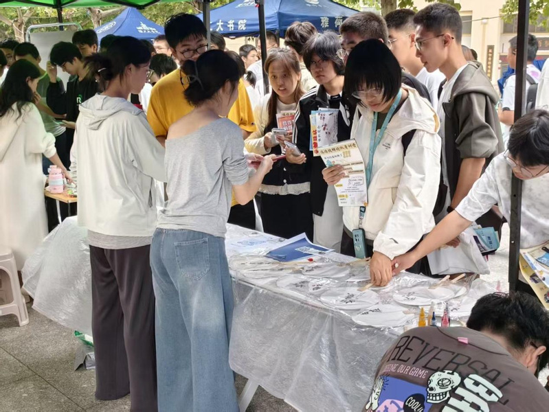 活动期间,书院成员全程热情引导,耐心协助同学们解决创作难题,不仅保障了活动有序开展,更在互动中拉近了与同学们的距离。此次秋季社团巡礼活动,不仅为同学们提供了展示自我、交流互动的平台,更以传统文化与创意结合的形式,丰富了校园文化内涵,让秋日校园更具生机与温度。