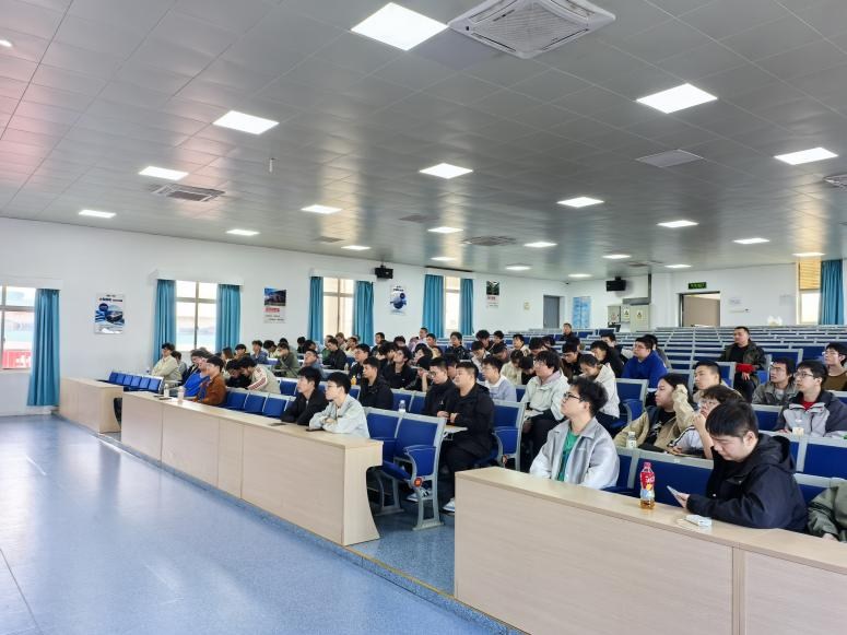 11月11日,本期劳模讲堂走进企业,走进上海外高桥造船有限公司,将报告会开展在企业现场。本期特邀上海市劳动模范、上海市五一劳动奖章获得者、中船上海船舶工业有限公司三八红旗标兵、国产首艘大型邮轮“爱达·魔都”号调试工程师马玲作了题为《以匠心铸就国之重器,用实干逐梦深蓝航程》的报告,海洋工程学院船舶系教师温建民、鲁国春、公常清、于帮龙、辅导员王军凯以及船舶与海洋工程专业100余名学生参加本次活动。