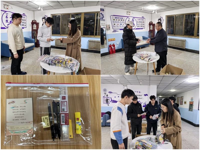 学院准备了“实用+暖心”的考研暖心大礼包,包含考试必备的文具套装以及印有“顶峰相见”“一战成硕”等励志标语的加油卡片,每一份礼包都经过辅导员和学生志愿者仔细整理、整齐打包,既切实解决了考试的实际需求,更让温暖与鼓励直达同学们心间,这份来自学院的关怀,也让同学们倍感安心与振奋。