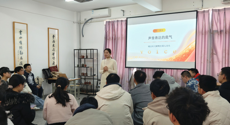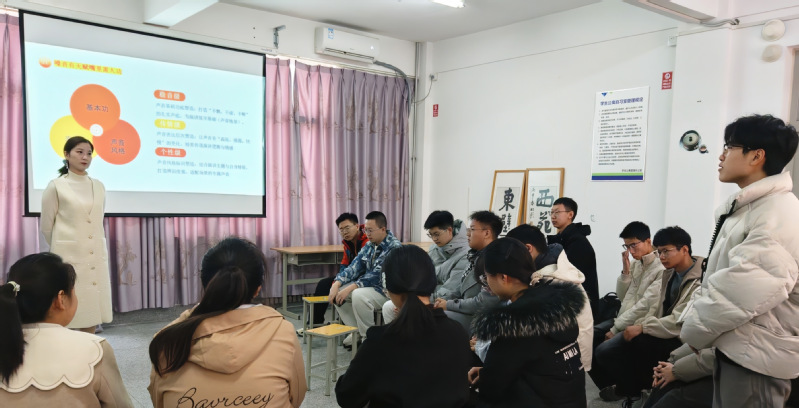 为提升同学们的语言表达与沟通能力、培养临场应变与控场能力等综合素养,助力学生夯实职场竞争力,云杉书院春季学期《主持艺术技巧》通识课3月14日上午在十一公寓二楼中厅顺利开展,威海电视台“直播威海”栏目主播李进进担任本课程的主讲老师,课程吸引了二十余名来自不同专业的同学。
